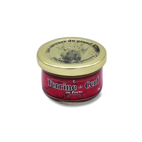 Cerf • Porc • Pommes de terre • Foies de volaille • Oeufs • Eau • Oignons • Fécule de maïs • Porto (Sulfites) • Sel • Madère (Sulfites) • Sucre • Ail • Poivre • Épices